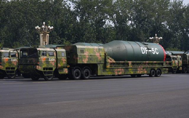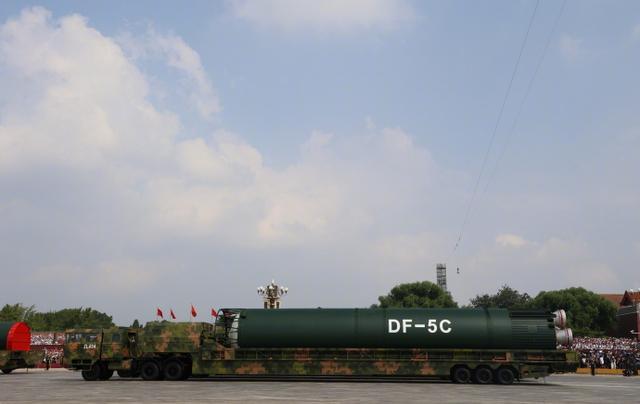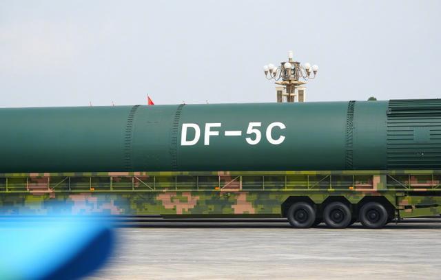 “打击范围覆盖全球”,东风-5C帅照再看亿遍。东风-5C有多大?网友:三辆军车才能拉得下。